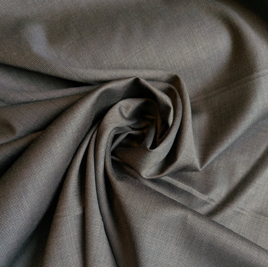 Shirt weight tightly woven fabric in dark brown with tan undertones in a tight hatch pattern. The fabric is made of superfine 135 Australian Merino wool. The material is 58 inches wide. Sews beautifully, not scratchy,...Regular price $14.97 -
