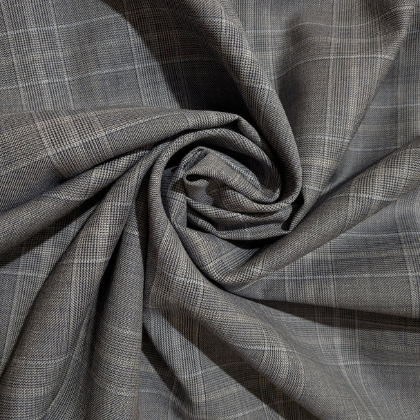 Blue Gray Superfine Wool Plaid fabric by the yard 58" wide