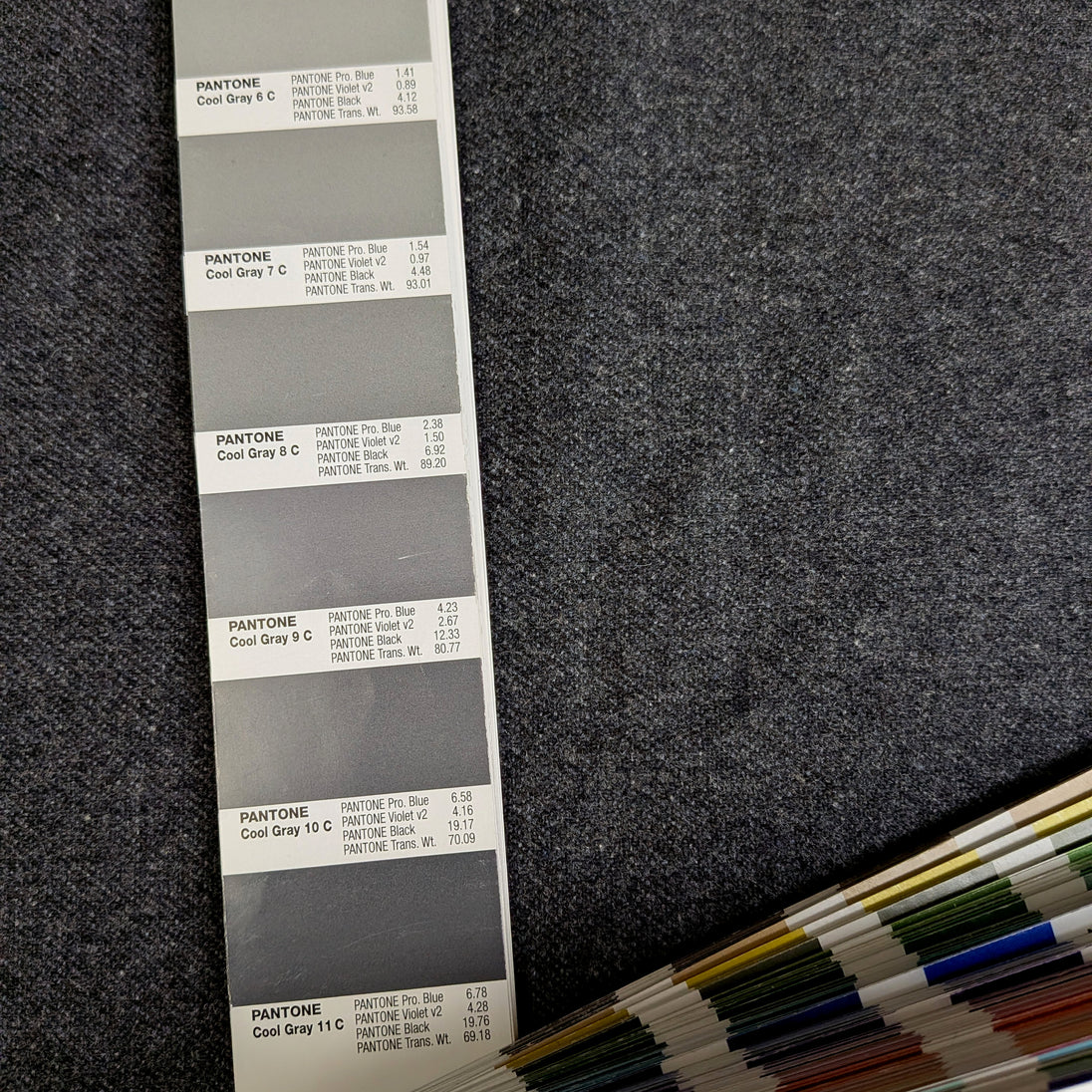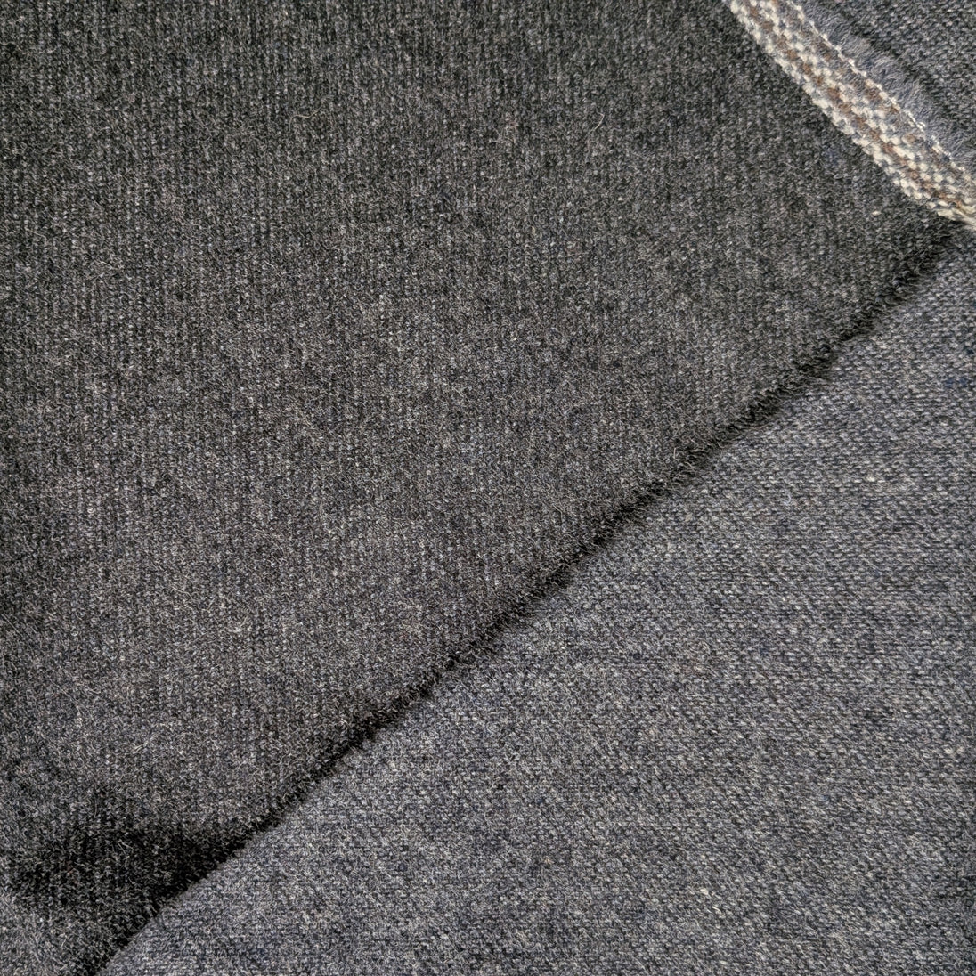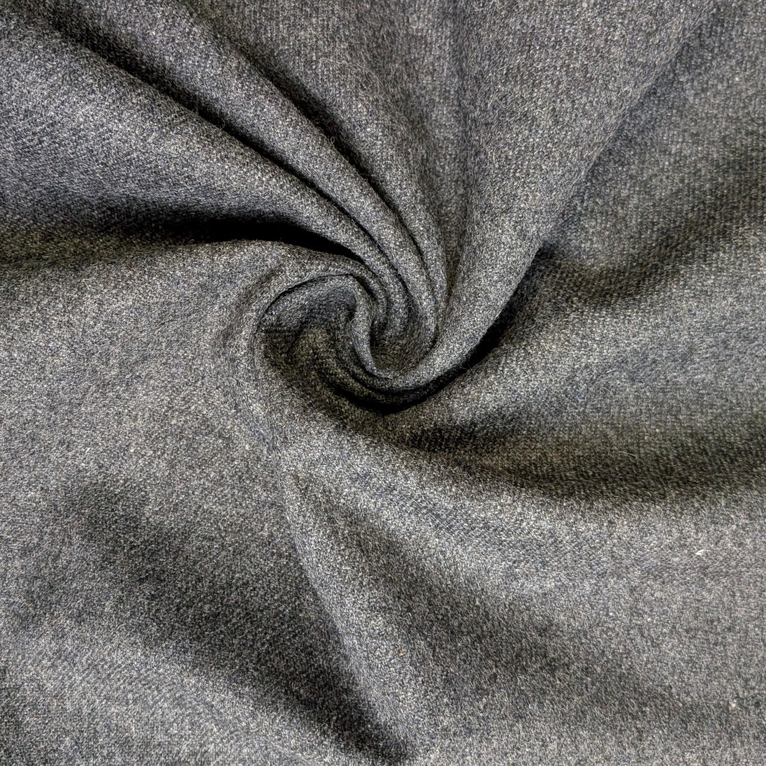 Flannel weight perfect flint gray wool with minimal color variation. Brand new fabric. This piece is new, off the bolt, and 58 inches wide. One side is darker than the other.