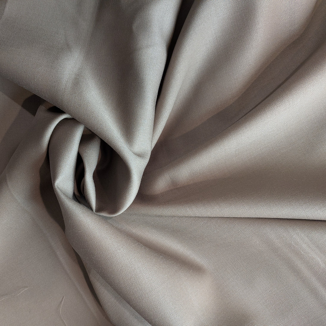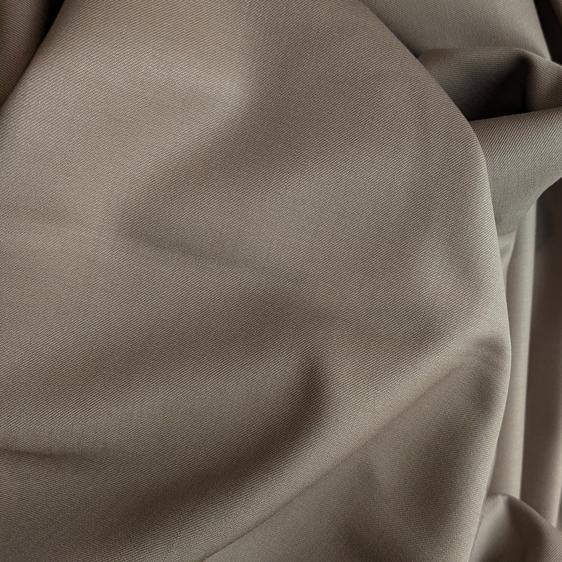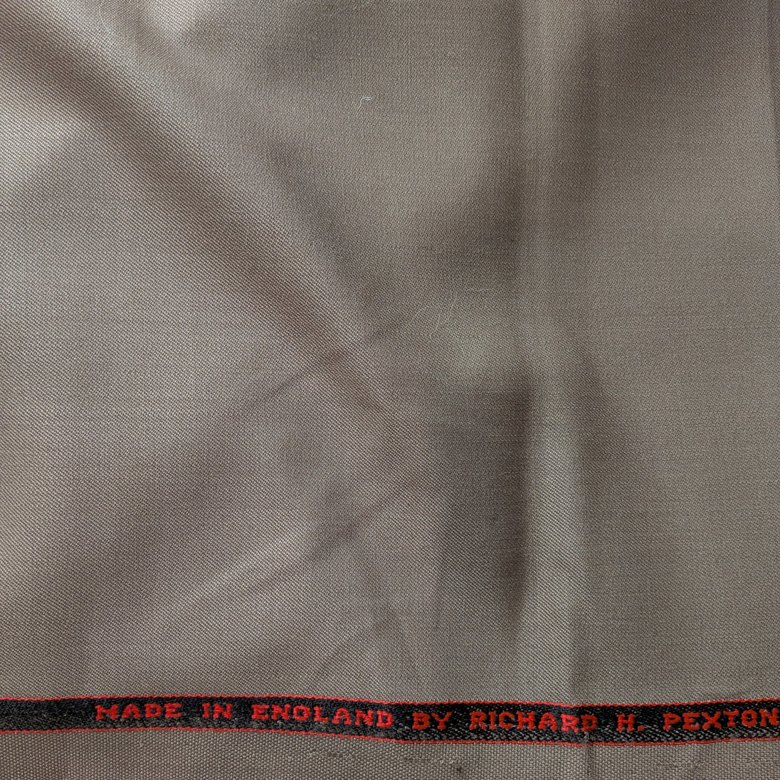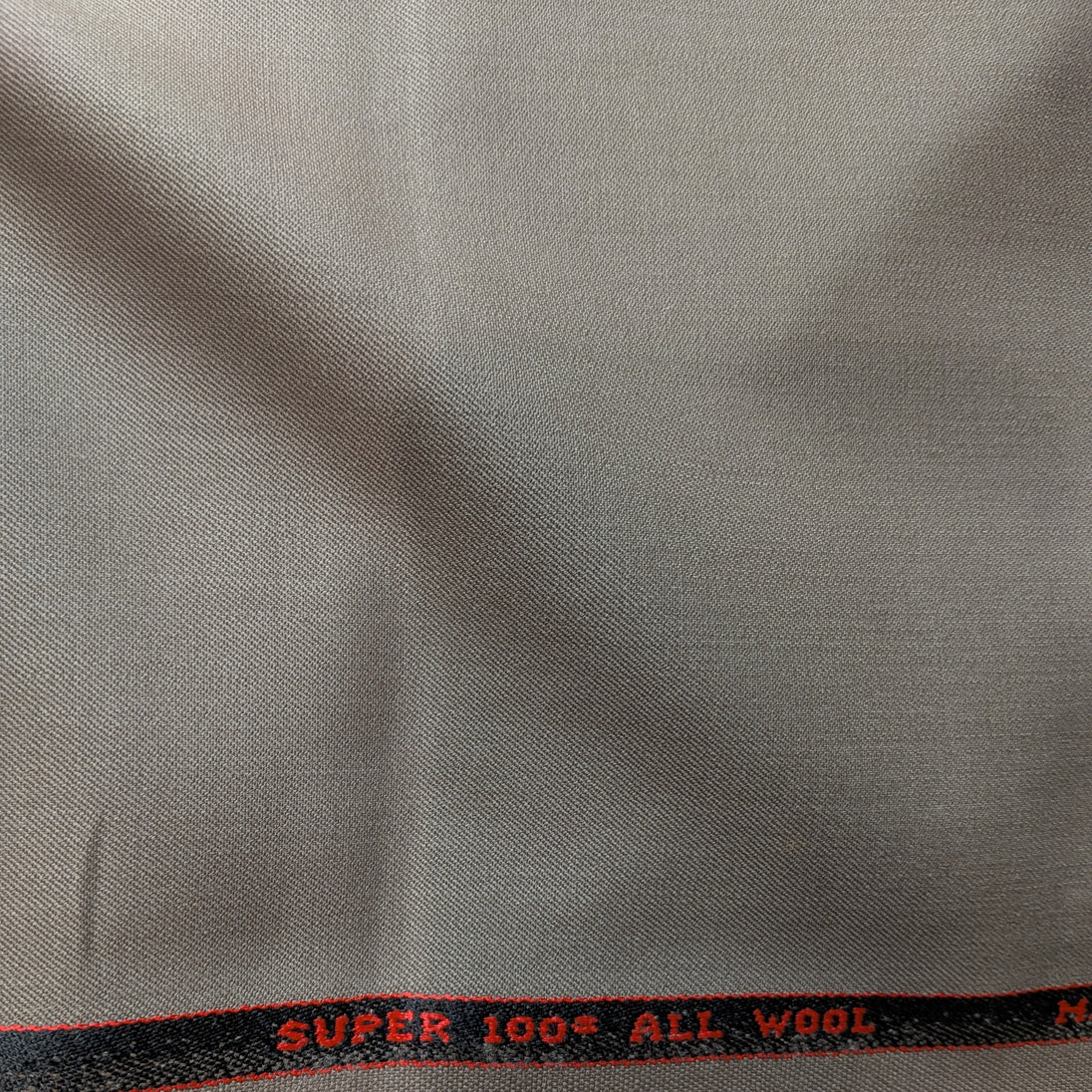 Shirt weight tightly woven fabric in pale taupe color in superfine 100 with a high twist resulting in a flat finish. The fabric is made of superfine wool woven in England.