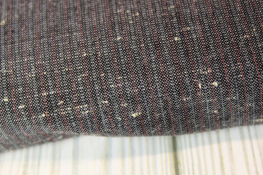 Worsted weight at 6 oz/yard double-sided black woven fabric composed of finely woven high-quality wool. Subtle fuschia pink pin stripes 3/4" apart running parallel to the selvage. The fabric is a high thread count made by...Regular price $13.97 -