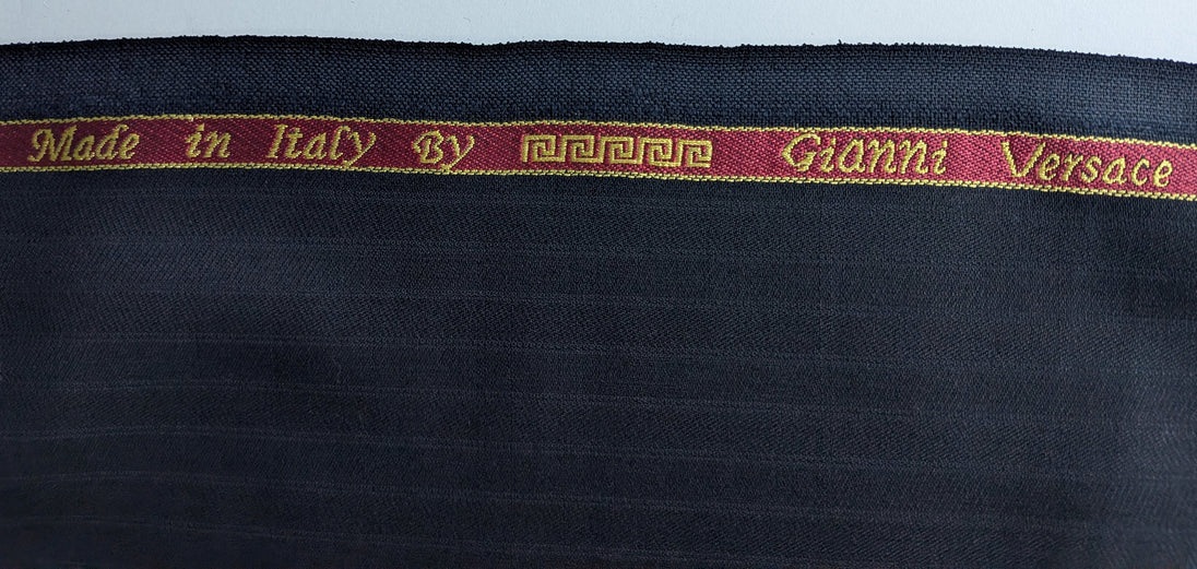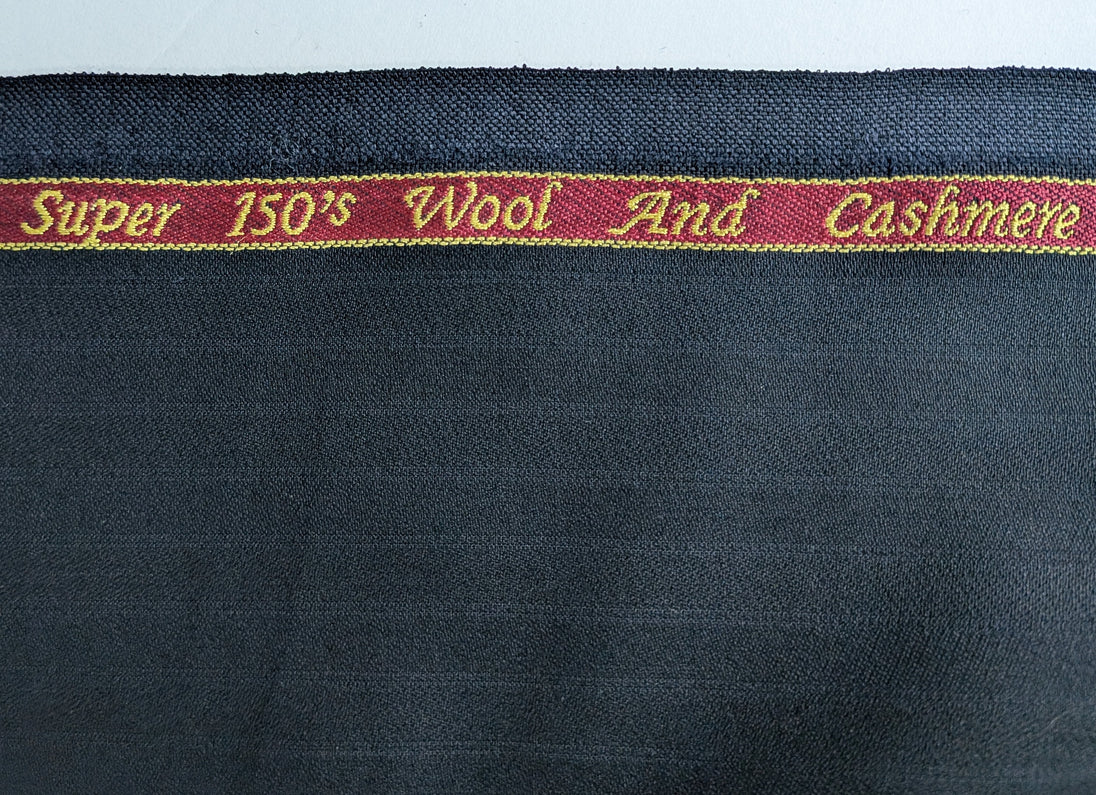 Shirt weight tightly woven fabric in a dark blue color. The fabric is made of Superfine 150 wool and cashmere made in Italy for Gianni Versace. The material is 58 inches wide and 51" long.