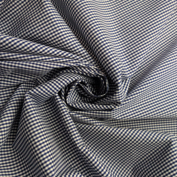 Blue Gingham Italian Fine Cotton Shirting by the yard 58" wide