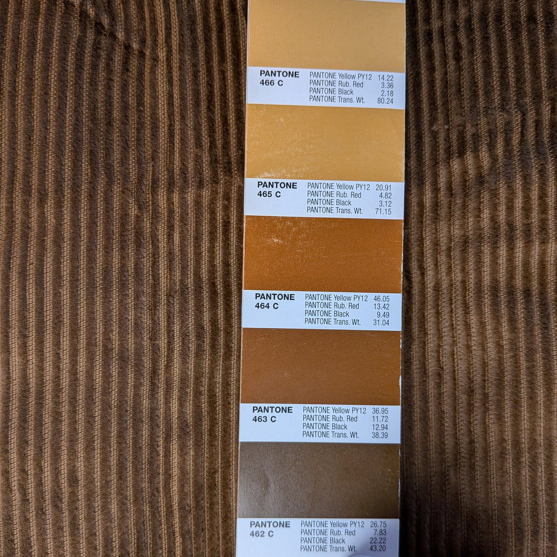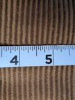 100% cotton deep brown corduroy is perfect for slacks, skirts or a jacket. The wale is the number of ridges per inch. With 6-wale fabric, adds structure and has a soft hand. The width is 44 inches is sold by the 62" wide piece. The wale runs the length of the fabric. It is an opaque fabric but not thick making it easier to sew.