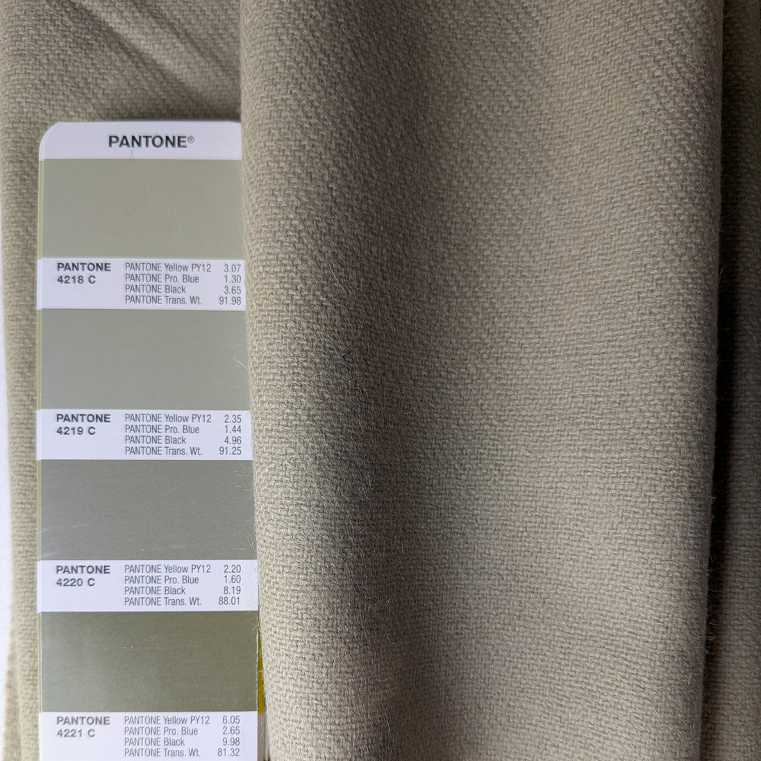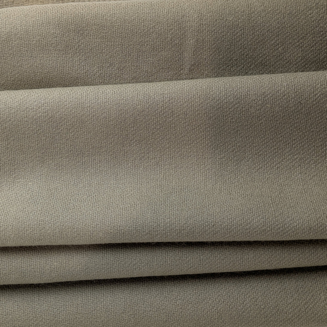 Flannel weight solid tan with a gray/green undertone wool . Brand new fabric. This piece is new, off the bolt, and 58 inches wide.