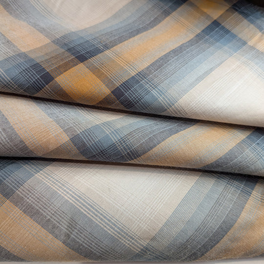 Shirt weight tightly woven blue and gold plaid with a cream. Pendleton pima cotton fabric.Sews beautifully, not scratchy, light-worsted summer weight shirt weight. Plaid 4" X 5" inch blocks. This fabric feels and flows more like...Regular price $13.97 -