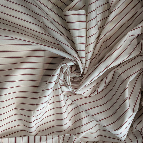 Maroon on White Italian Fine Cotton Shirting by the yard 44" wide