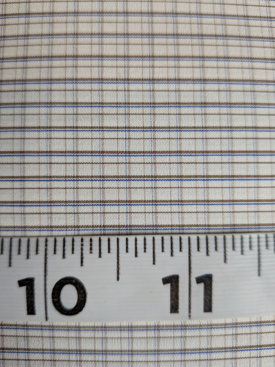 Lovely fine cotton fabric cotton, tightly woven with high thread count, creating a check pattern of gray, blue and brown. Soft hand with a little bit of body and is opaque. It is 6 oz/yard. Orders...Regular price $6.97