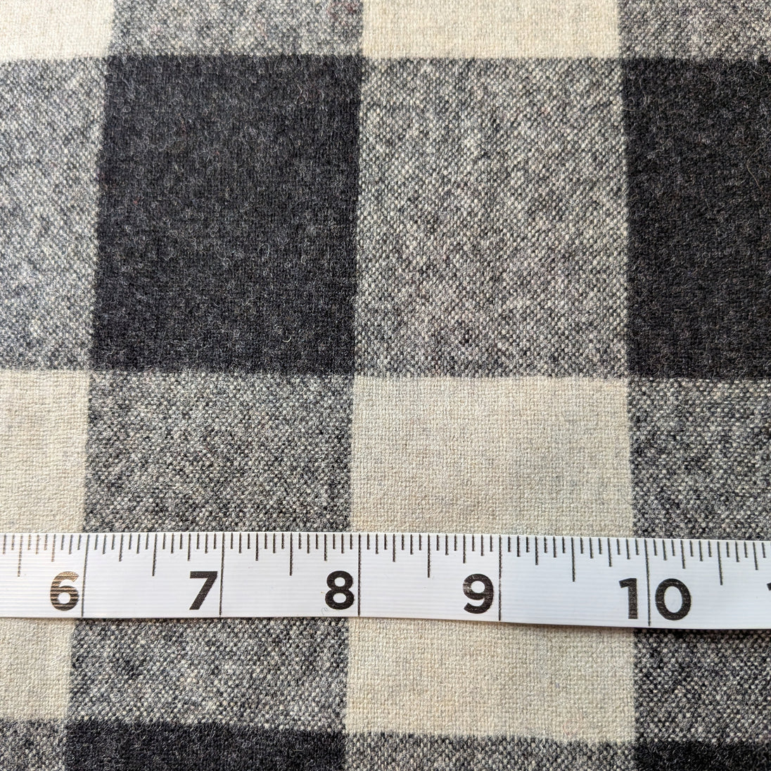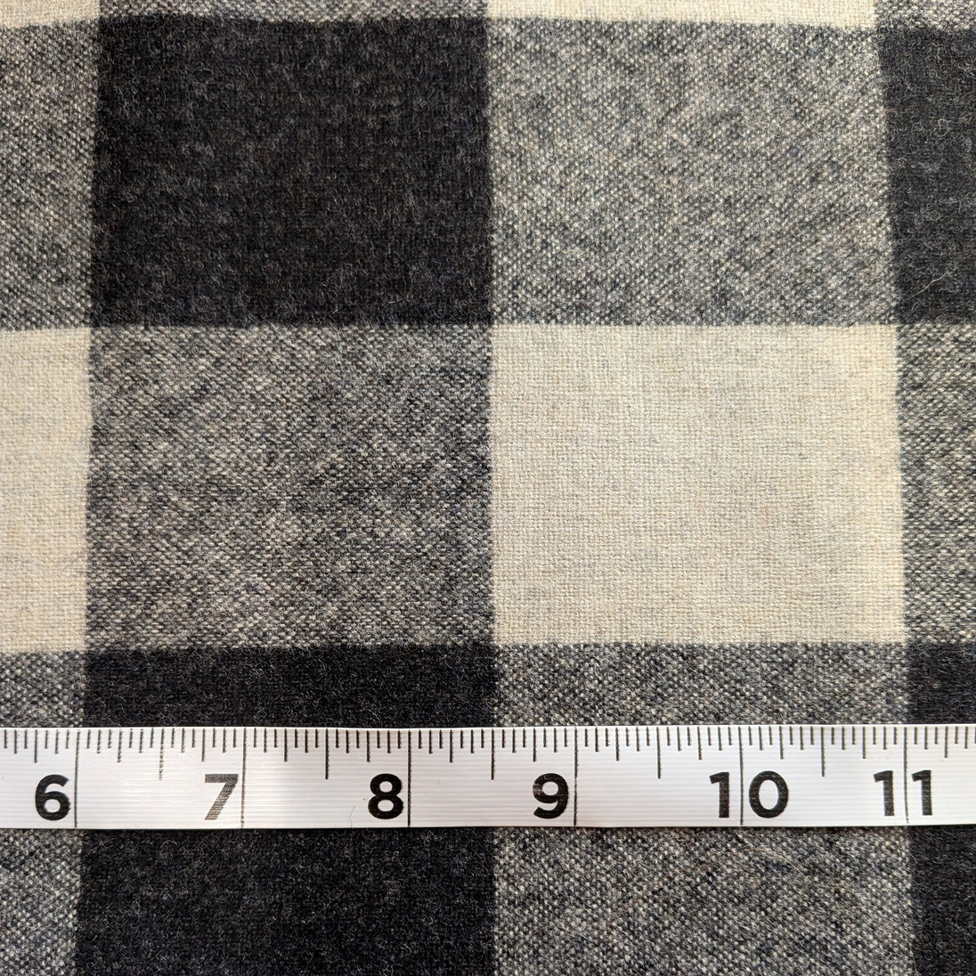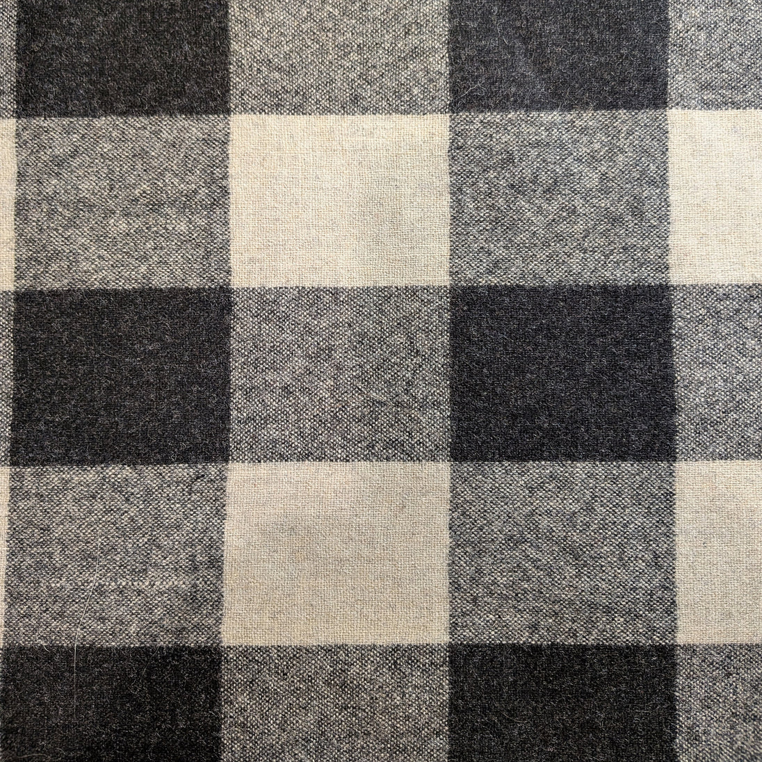 Shirt weight flannel-weight black and white checkerboard plaid is 100% wool and the sheep fleece is sourced in the US. Brand new fabric.