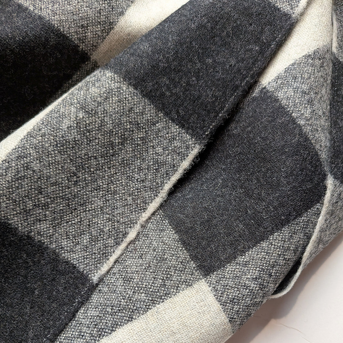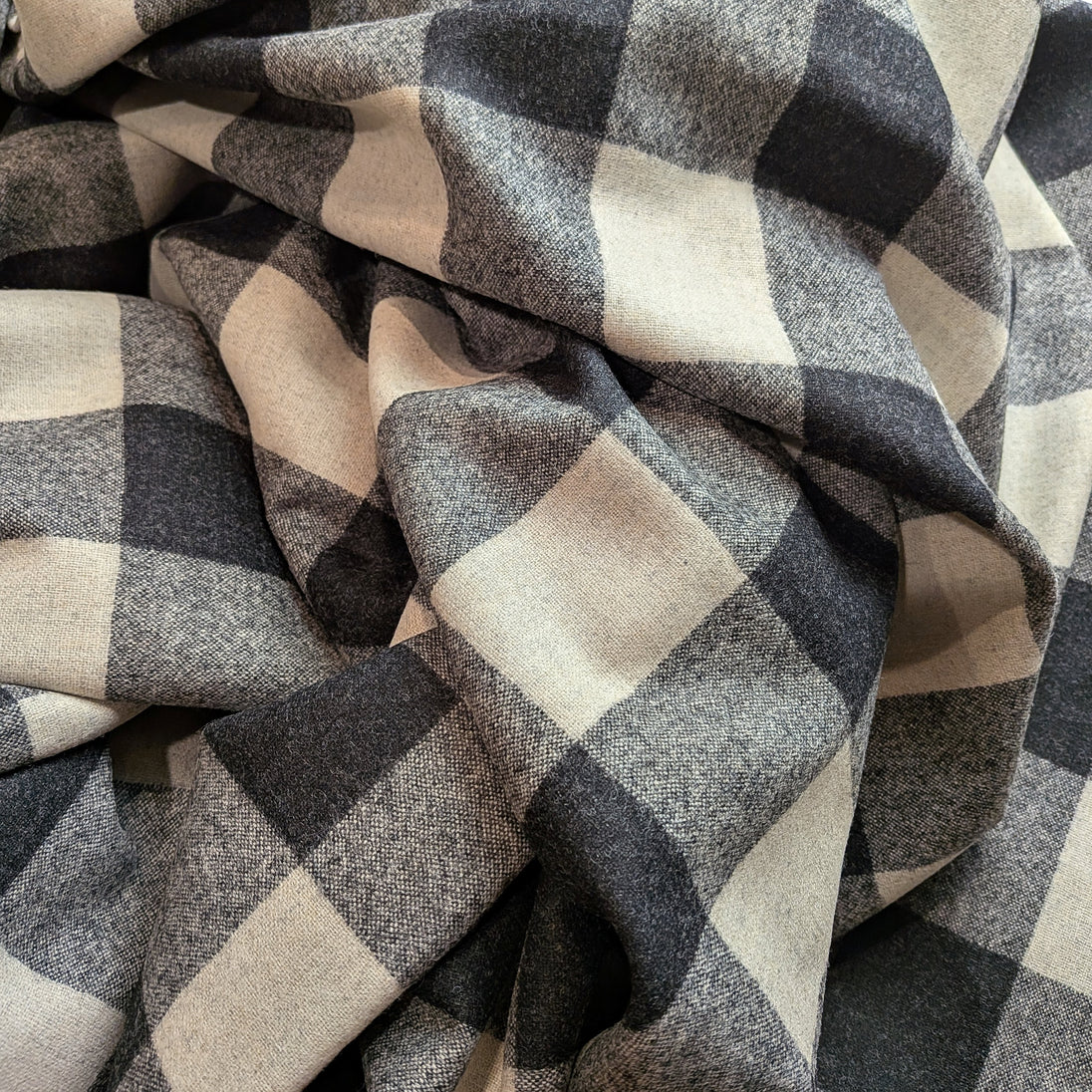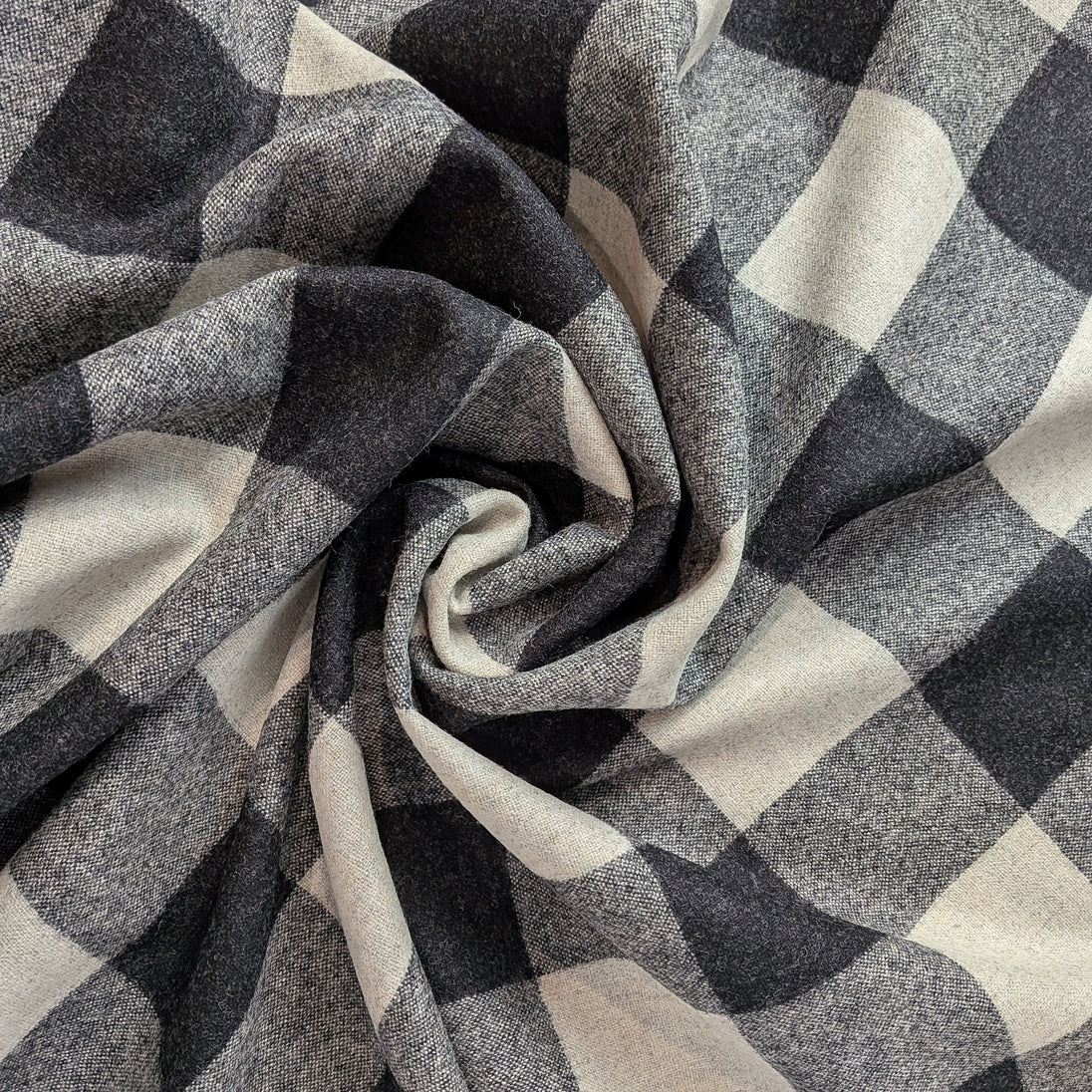 Shirt weight flannel-weight black and white checkerboard plaid is 100% wool and the sheep fleece is sourced in the US. Brand new fabric.